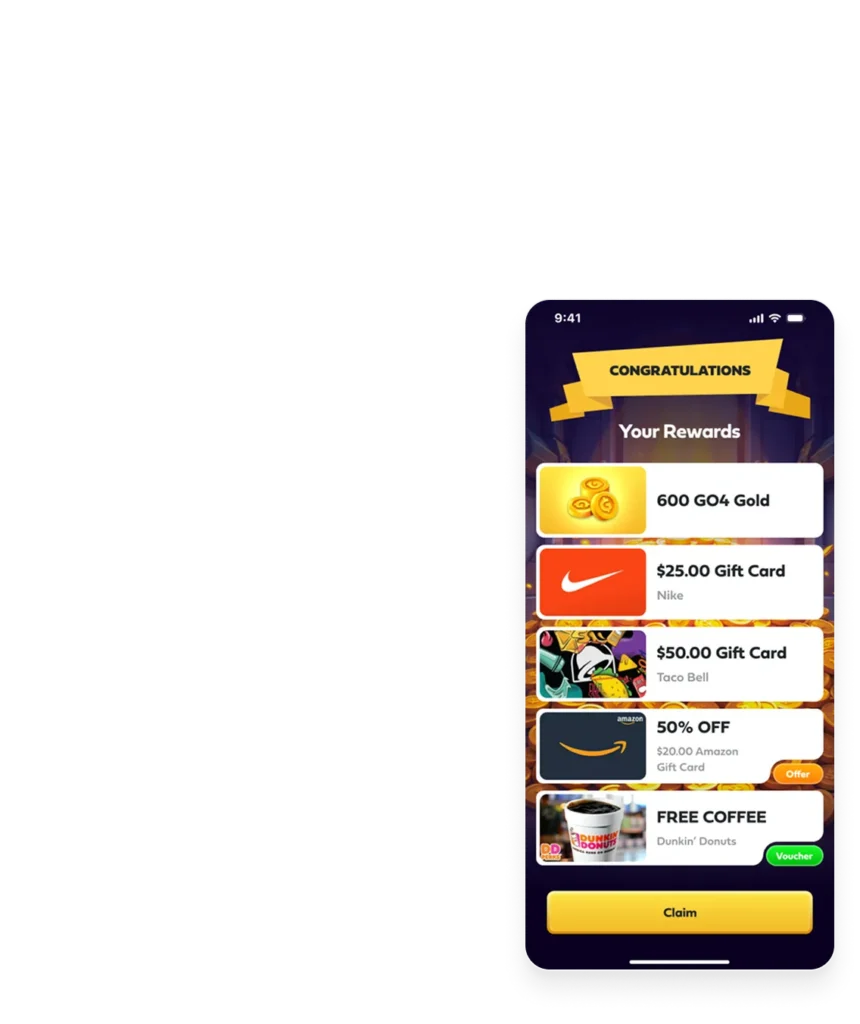 GO4 Gold™ is a gamified rewards platform connecting brands with gamers through fun, skill-based experiences. Players earn real rewards while brands drive engagement.